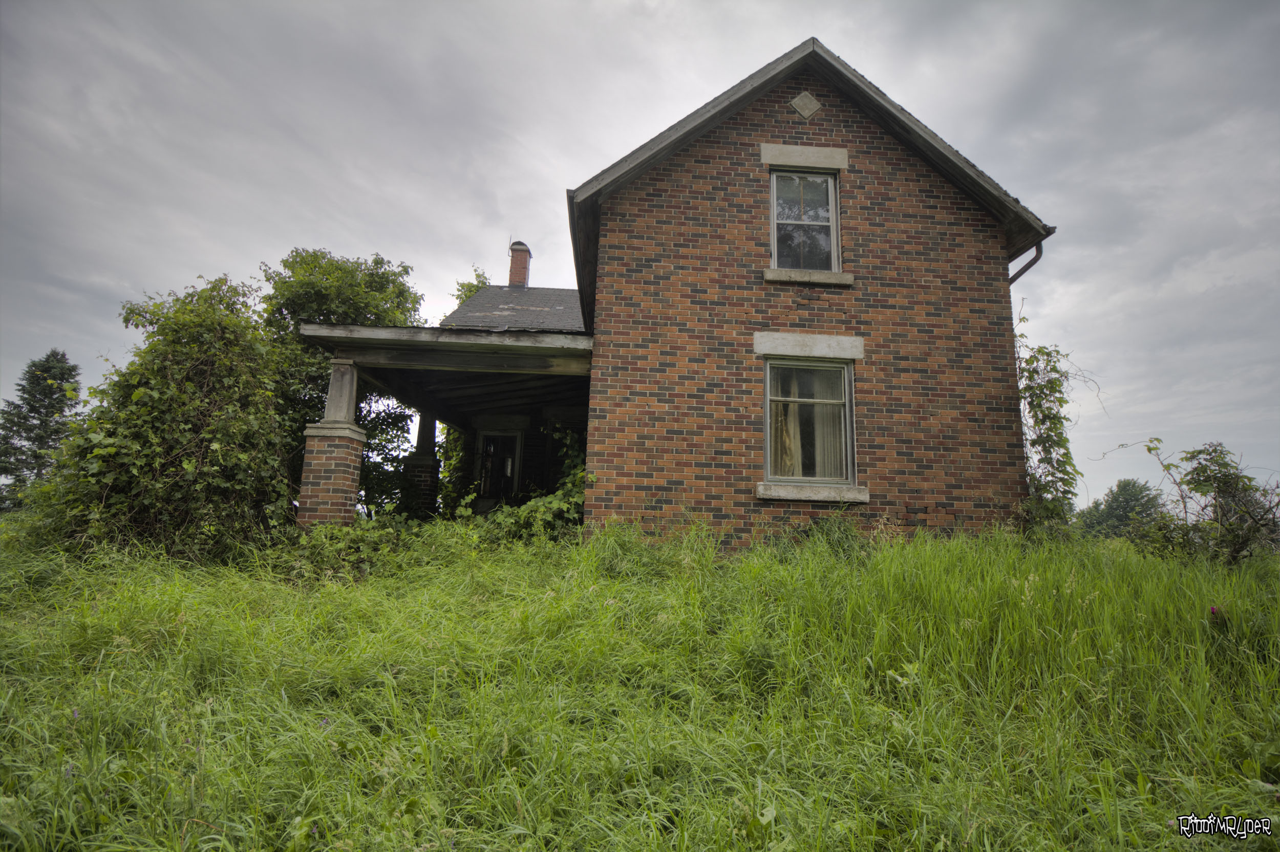 The farmhouse's exterior, clad in brick, evokes memories of happier days. When laughter echoed through the corridors and warm light emanated from its windows. Today, these windows stare blankly at the horizon, veiled by overgrown vines and curtains of dust.